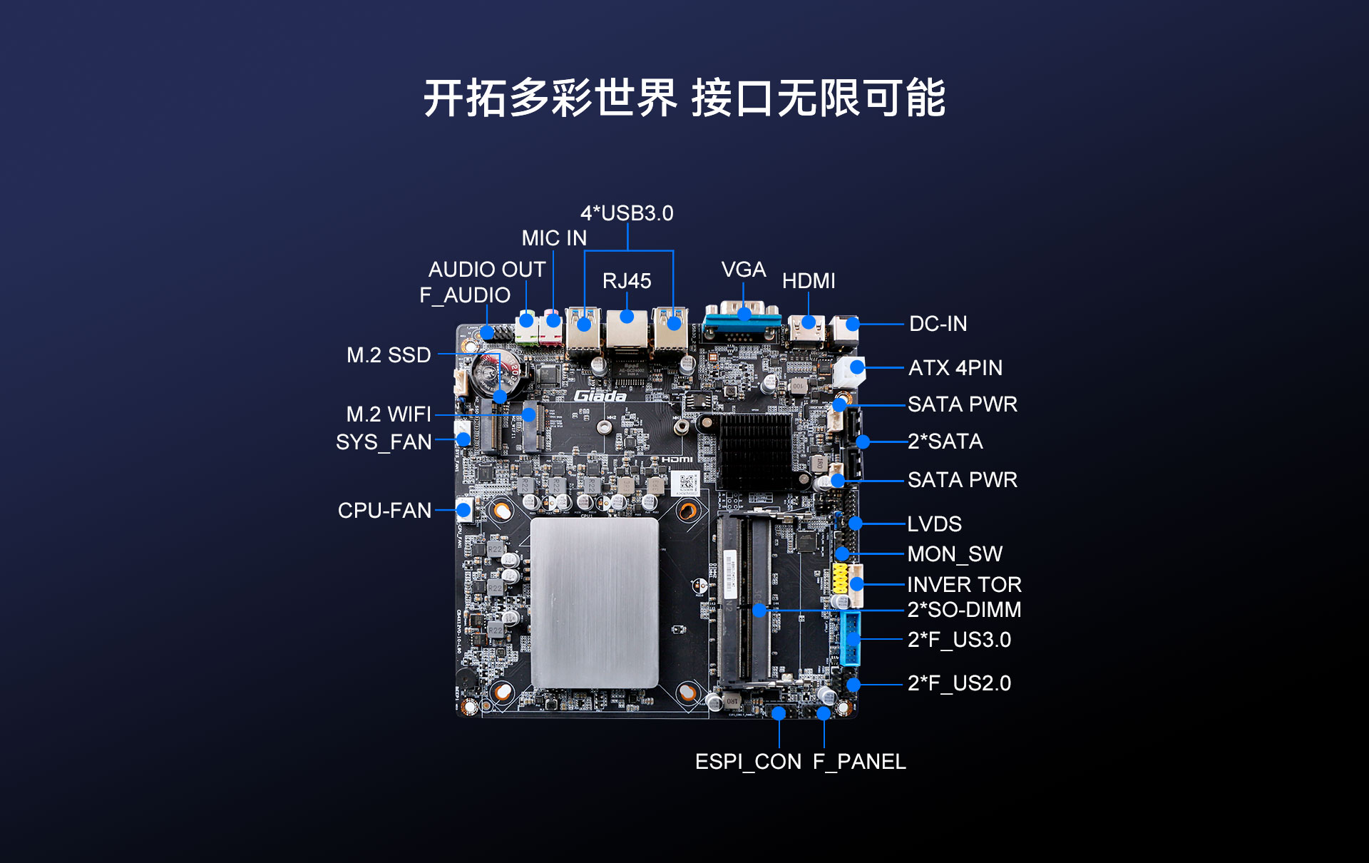 | 内部I/O | 接口 | M.2(2088) for(pcie4.0 x4/SATA3.0) SSD M.2(2230)for WIFI/BT 2 x USB2.0 9pin 1 x CLR_CMOS插针3pin 1 x MON-SW 5pin |